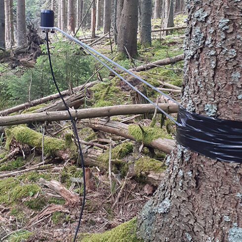 We have been involved in the experimental equipment of the water catchment of Strengbach, Alsace (France). The collaboration is with the Institut Terre & Environnement de Strasbourg – École & observatoire des sciences de la Terre. The main aim of the field campaign is the acquisition of data (e.g., temperature, radiation, air humidity) to shed new light on the dynamics of evapotranspiration, which plays a crucial role in the overall water cycle at the catchment scale.