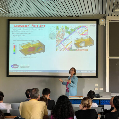 Monica gave a talk entitled “Groundwater: the invisible that matters“, emphasizing the key role of underground water resources as the world primary source of fresh water and the critical importance of modeling and predicting flow and transport processes in such environment.