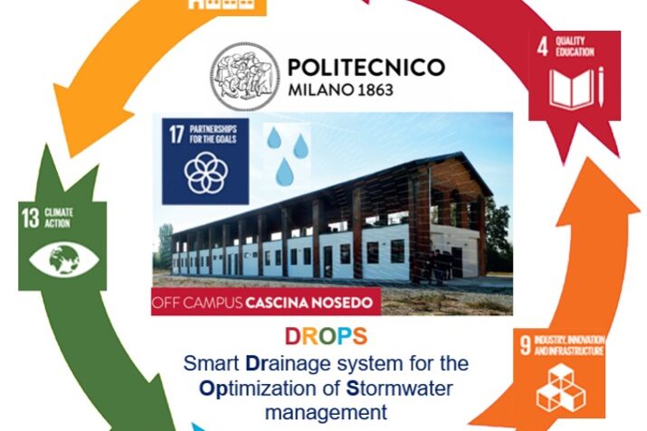 DROPS promotes sustainable practices, smart systems, and Living Labs for evaluating the impact of design choices on water systems and urban ecosystems. The project includes an improvement intervention for stormwater management at the Cascina Nosedo Off Campus, considering three main aspects: Research, for optimizing stormwater management through the installation of a collection tank; Education, with a field laboratory (DROPS LAB) for water and soil measurements; Public Engagement, involving training of partner organizations and raising awareness among citizens. DROPS team includes researchers from three Departments of Politecnico di Milano (i.e., Department of Civil and Environmental Engineering, Department of Mechanical Engineering, and Department of Electronics, Information, and Bioengineering) and is coordinated by Prof. Anita Raimondi.
